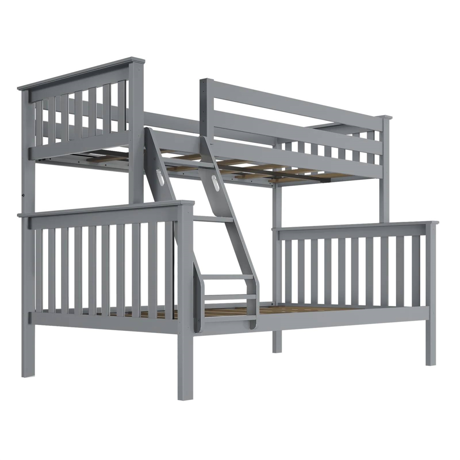• Twin over Full size Solid Wood Bunk Bed in Grey Finish