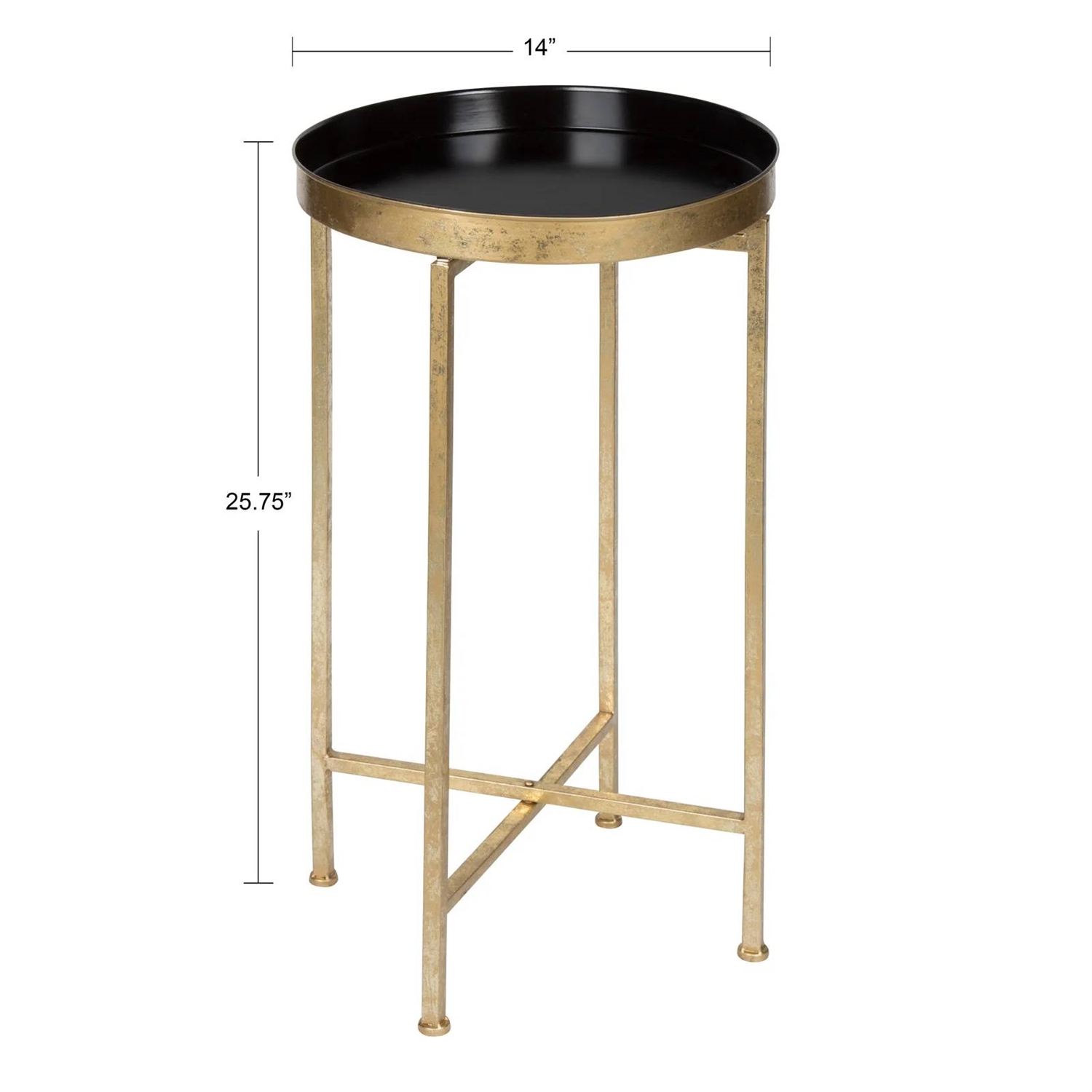 • Gold Finish Metal Round Nightstand End Table with Removable Black Tray Top