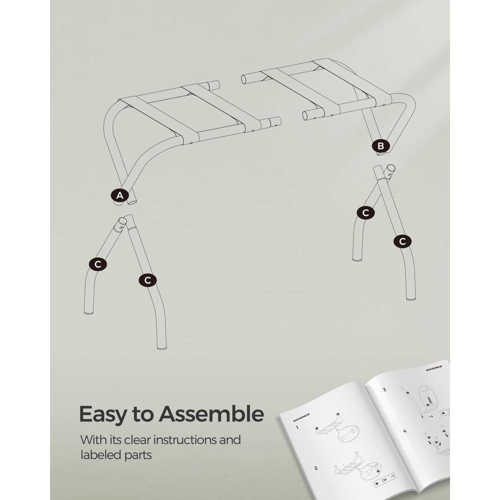 Make your guests’ stay more comfortable with this Set of 2 - Black Metal Foldable Luggage Rack with Forest Green Straps. It keeps the luggage off the floor to save you or your guests from bending down to the floor, making packing and unpacking for trips much more easier. Fastened to the steel frame, the nylon straps will always stay in place without moving during use; the suitcase stand is strong to hold up to 110 lb; the adjustable feet improve the stability and won’t scratch the floor. Fold it flat to save space when not in use, the folded size of 27.2”L x 4.3”W x 26”H can fit in a small corner, closet, or under the bed; standing at 27.2” L x 15” W x 20.5” H, it can hold up to a 26” suitcase With clear instructions and an Allen key included, you can set up this luggage rack effortlessly, ready to help with the packing for the next trip. A steel luggage rack for guest rooms with a foldable design, adding extra storage while being a nice touch to any room.