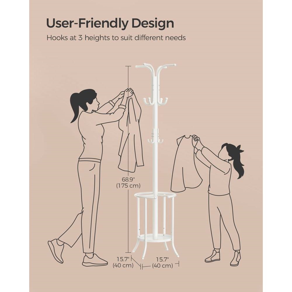 • Heavy Duty White Metal Coat Rack with Umbrella Holder