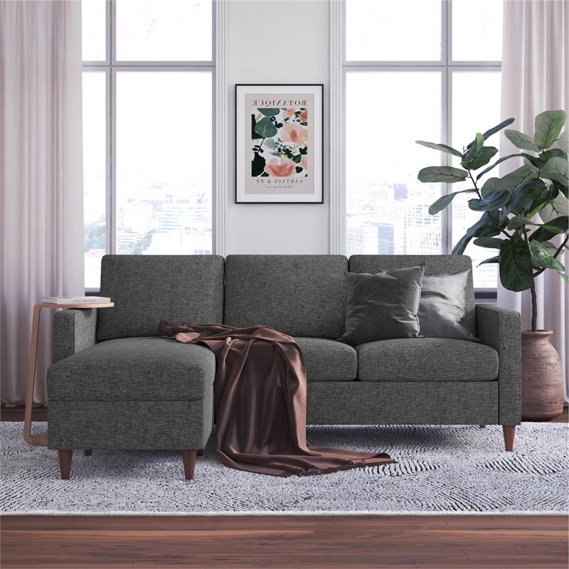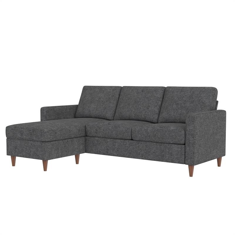 Working around the tight corners of your living room can be tricky - especially when trying to find furniture that doesn't look oversized for your space. The Mid-Century Modern Left or Right Facing Sectional Sofa in Dark Grey Linen brings the perfect small space magic to living areas without conceding on comfort. Its space saving wood frame and solid wood legs in a welcoming walnut finish provide reliable durability for long-term use while the couch also incorporates pocket spring construction in the seat cushions to give sitting family and friends a thoroughly supported sitting experience with no sagging or sinking feeling. And the chaise can be positioned on either side to meet your room needs or transformed to create a detached sofa and ottoman look. Covered in contemporary linen fabric upholstery with classic L-shaped rectangular contours, its defined track arms with piping trim detail serve a stylish display.