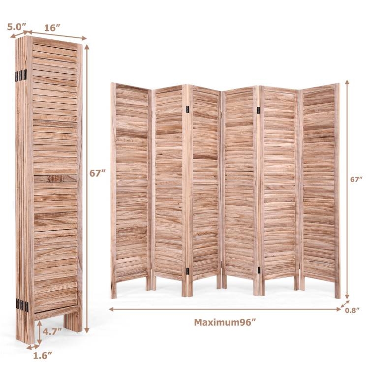 6-Panel Classic Louver Slatted Room Divider Screen in Brown Wood Finish