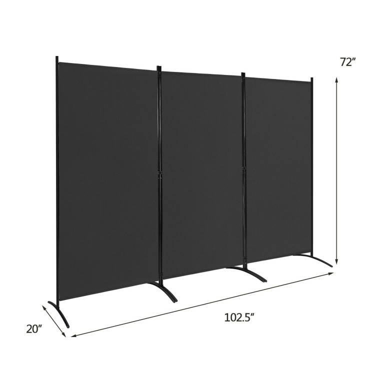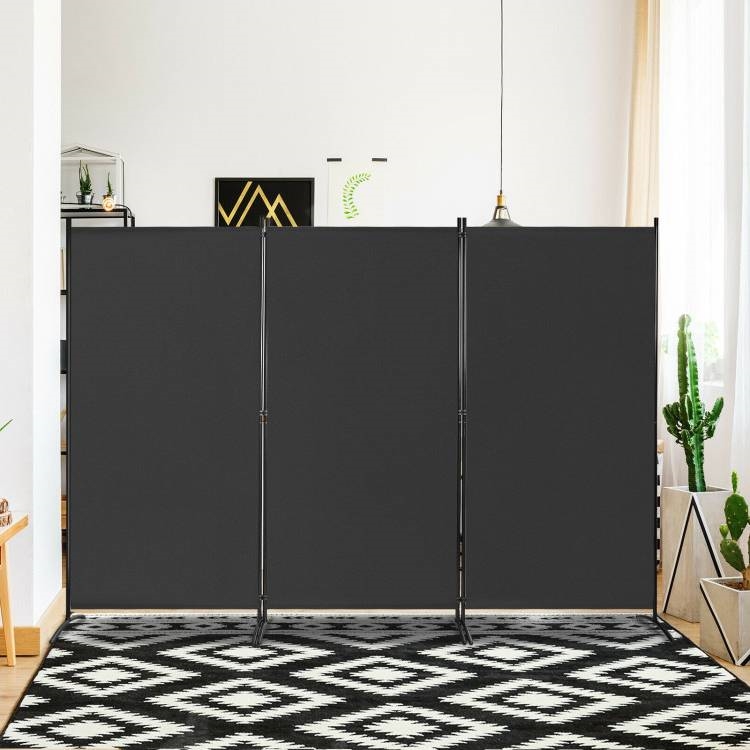 • 6-Ft Black 3-Panel Room Divider Screen with Steel Base and Heavy Duty Hinges