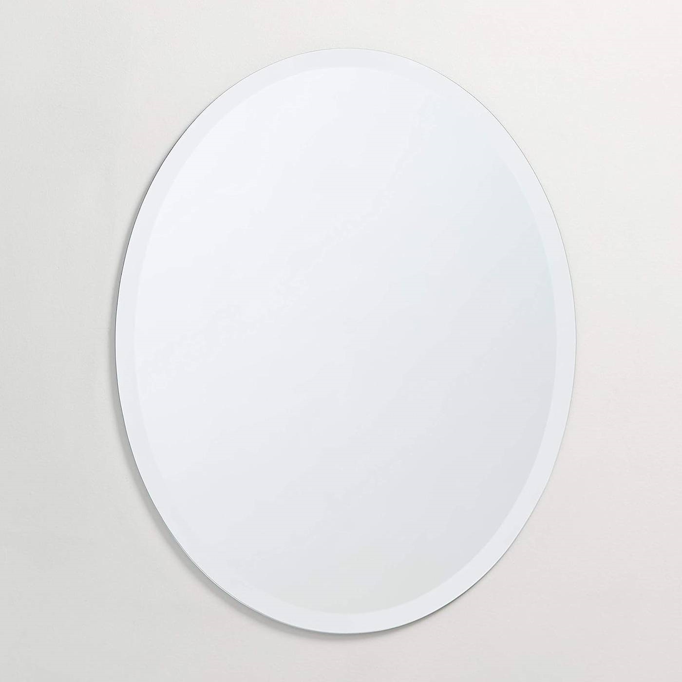 The Classic Oval 36-inch Frameless Beveled Bathroom Bedroom Living Room Vanity Wall Mirror will make a great addition to any room in your home. Since there is no frame, this oval mirror makes it easy to match colors in your bathroom, bedroom, living room, or anywhere in between. Finely crafted 1-inch bevel offers showroom quality, while the polished edges ensure safe handling and a finished appearance.
