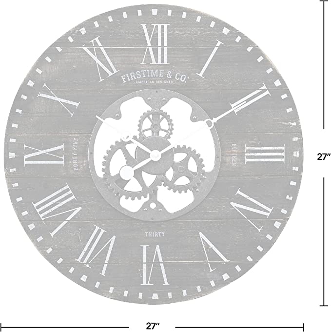 This Industrial FarmHome Round Oversized Wall Clock in Rustic Black features a 27 inch diameter and 2 inch depth, which makes it a great size for any space. Nothing ties a room together better than a great rustic clock. Easy to please, the easy-to-read numbers and eye-catching timepiece is the perfect addition to your living space. Finding the right clock to suit your style has never been easier thanks to our wide range of timekeeping solutions.
