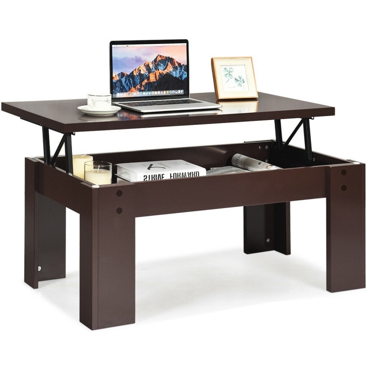 This Farmhouse Espresso Brown Lift-Top Multi Purpose Coffee Table can be lifted up and forward effortlessly to create a versatile working surface so you can relax on the couch and reach your laptop without leaning forward. A hidden compartment under the top is large enough to store your often-used items, like books, chess, game consoles, etc. What's more, it is made of premium MDF to ensure sturdy structure and strong weight capacity.