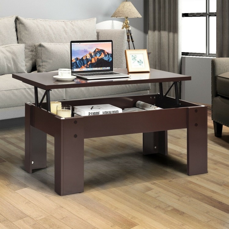 Home > Farmhouse Lift-Top Coffee Table Laptop Desk in Espresso Brown Wood Finish