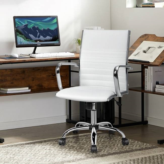 • White Faux Leather High Back Modern Classic Office Chair with Armrests