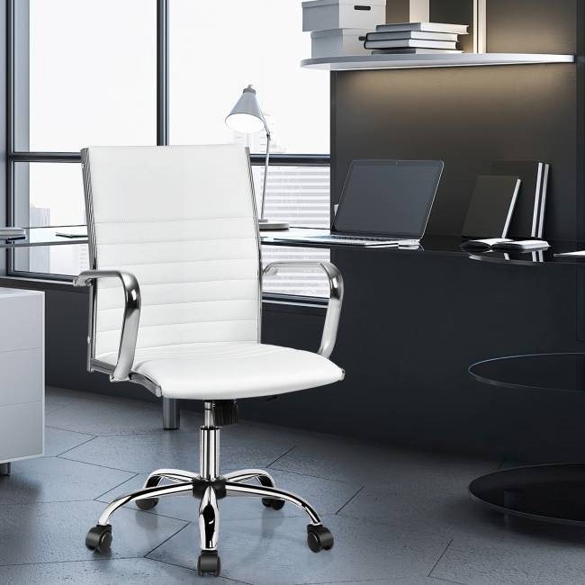 White Faux Leather High Back Modern Classic Office Chair with Armrests