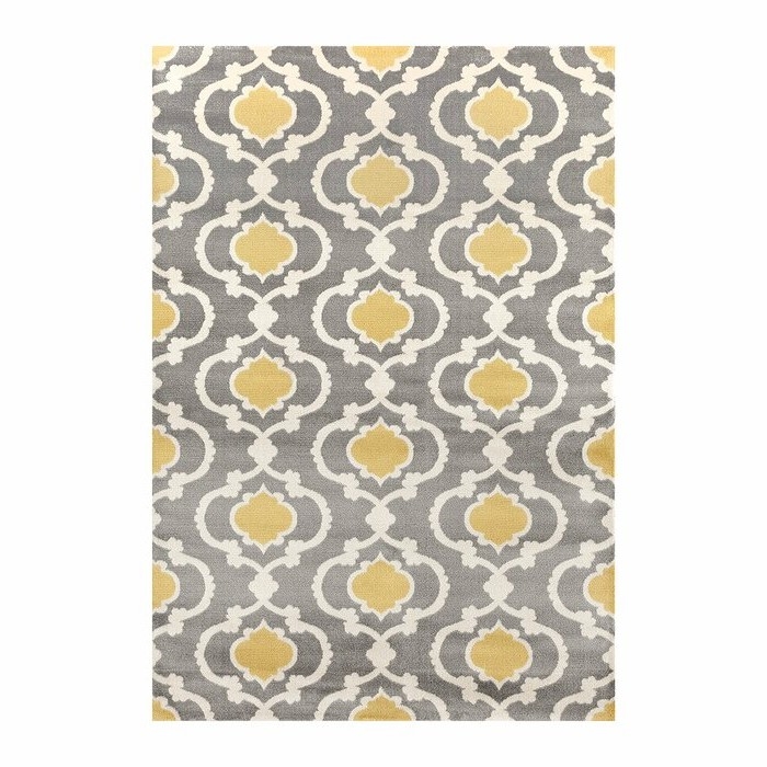 Give any room a vibrant contemporary look with this 3'3" x 5' Grey Yellow Trellis Geometric Polypropylene Area Rug. This beautiful area rug is machine-woven of stain/fade resistant polypropylene in a thick 0.39" pile. Perfect for rolling out in fashionable living rooms or just digging your toes in right out of bed in the morning. Comes finished with a durable jute backing and performs best when paired with a rug pad to prevent shifting and sliding.