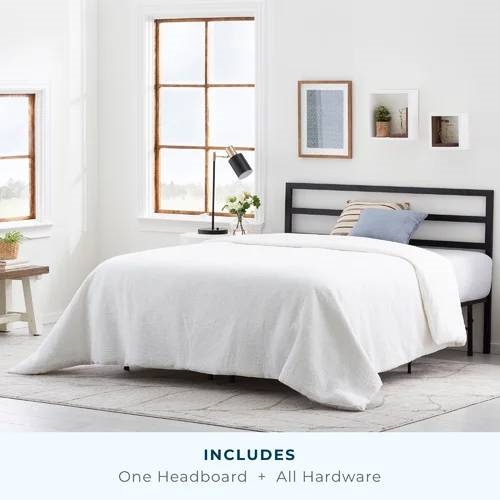 • All steel headboard with a matte black finish is a sturdy and stylish option to finish any bedroom in your home