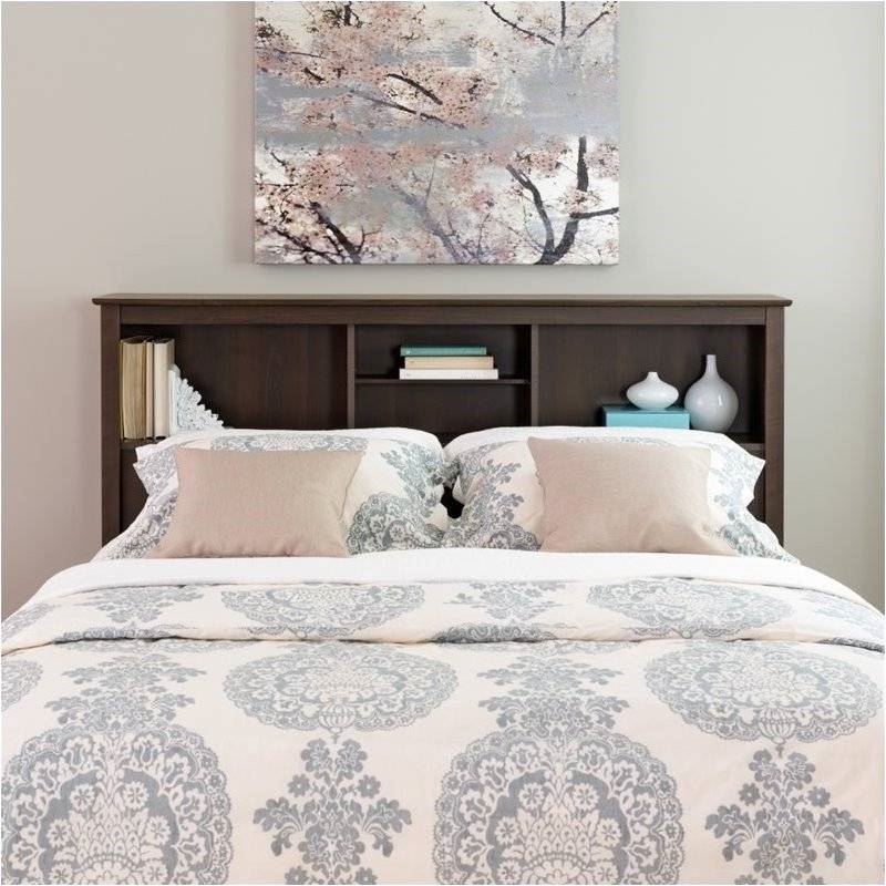 Home > Full/Queen size Bookcase Storage Headboard in Espresso Wood Finish