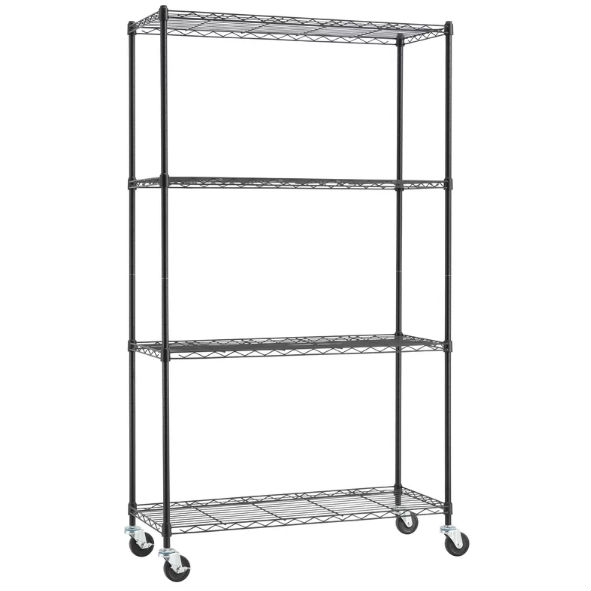 Home > Heavy Duty Black Steel 4-Tier Shelving Unit with Locking Casters