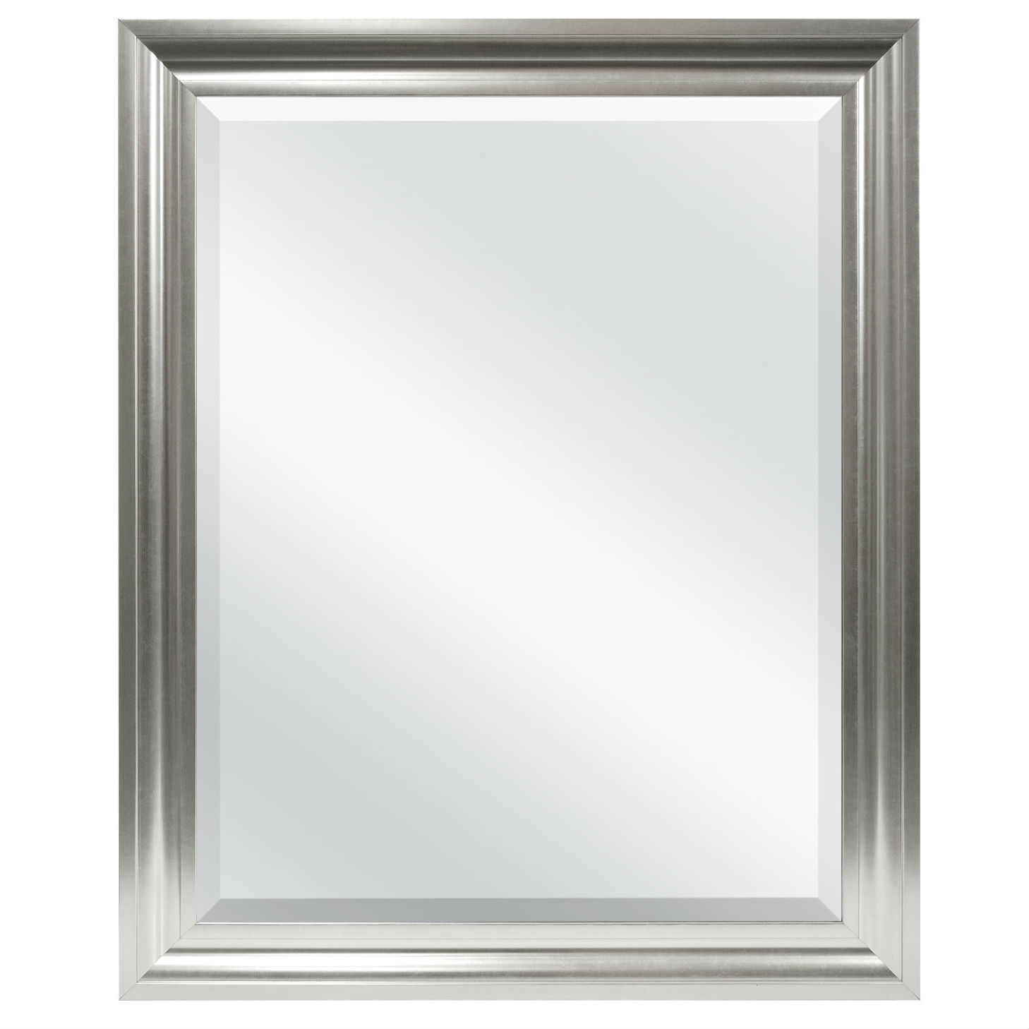 Rectangular Beveled Vanity Mirror with Satin Silver Finish Frame Rectangular Beveled Vanity Mirror with Satin Silver Finish Frame