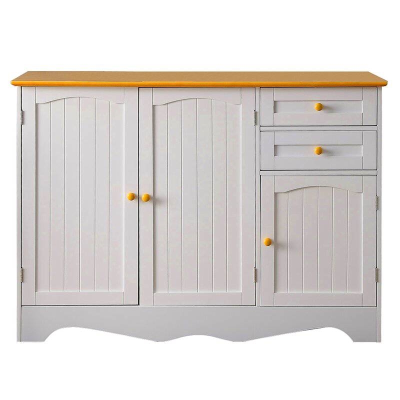 White Sideboard Buffet Cabinet with Light Wood Finish Top and Knobs